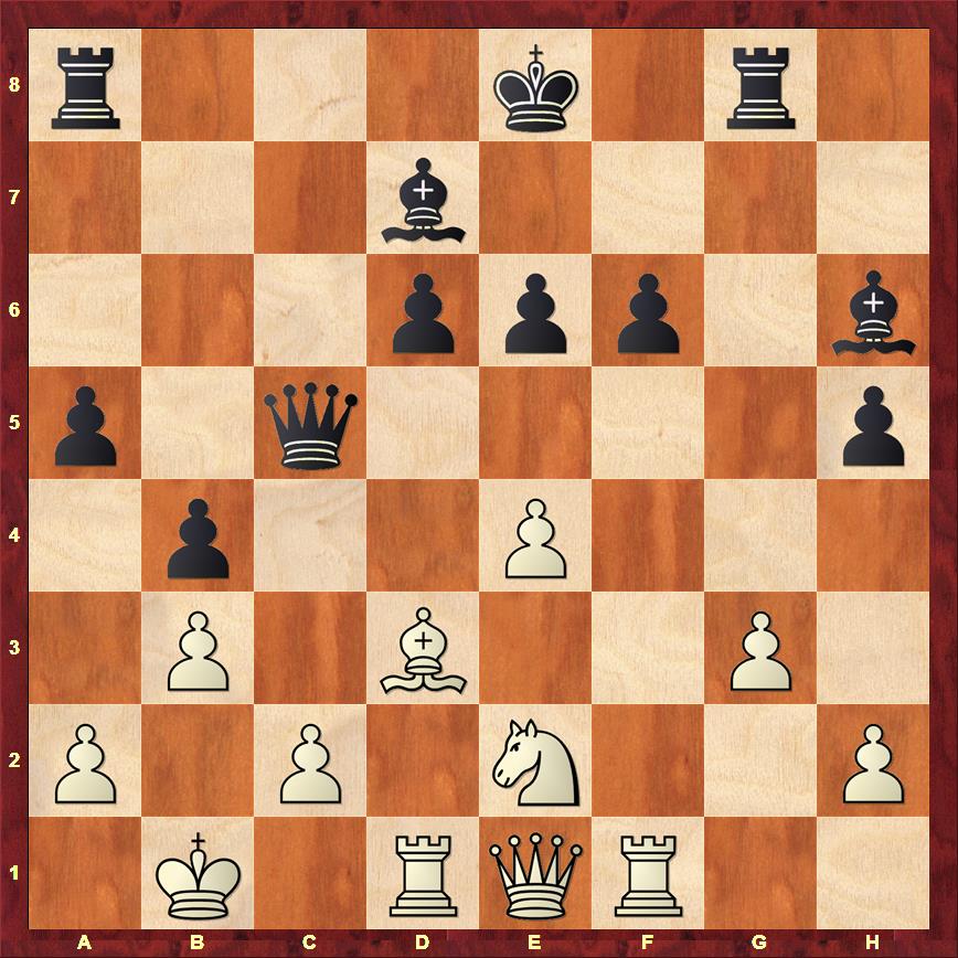 Bxb3 $16) 21. g3 Ke7 (21... Qe5 {was a natural move and is met with} 22. Bc4 $1
