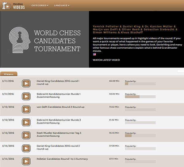 3/28/2016 – Sergey Karjakin and Fabiano Caruana went into the final round of the Candidates tied for first, with Caruana needing to win with black to qualify. That was not to be – Sergey defeated his opponent in a Sicilian Rauzer in 42 moves. With this win he became the Challenger for the World Championship in November against Magnus Carlsen. We have a detailed report from Moscow including pictures, analysis and lots of video interviews.