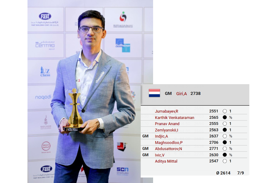 Anish Giri emerged as the clear winner of the 2025 Sharjah Masters after a determined effort in the final round secured him sole first place with a score of 7/9. Giri, the second seed, had been among the leaders from round three onwards and entered Sunday's ninth and final round tied for first place with top seed Nodirbek Abdusattorov.