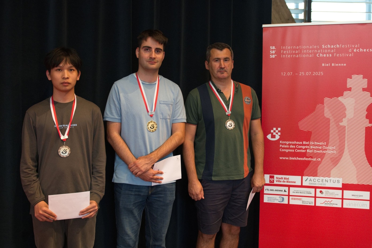 Parallel to the GMT, an open one-day rapid chess tournament was also held on Sunday at the Biel Congress Centre. 150 participants competed over nine rounds with a time limit of 15 minutes per person (plus 5 seconds increment per move). The tournament was won by GM Benjamin Bok, who was the only unbeaten player to achieve 8 out of 9 possible points. He was followed by GM Mikhail Kobalia, Chen Yuan, GM Mustafa Yilmaz and IM Banh Gia Huy, the only two players against whom Bok drew, with 7 ½ points each.