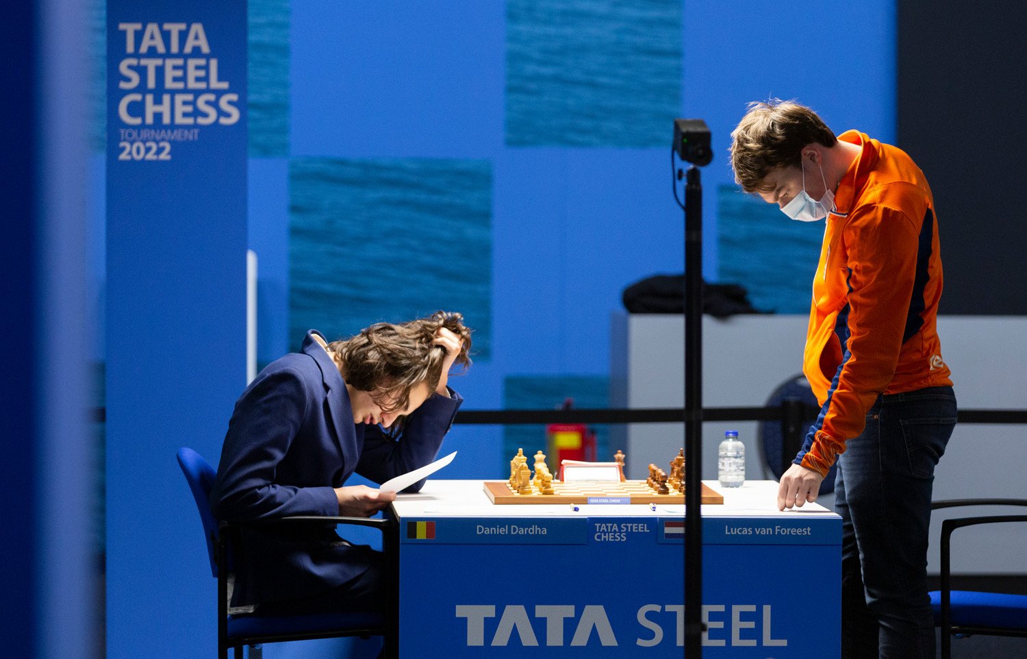 Did I miss to pay my taxes? Err, the new anti-cheating rules, and special play-off regulations, plus pandemic prevention measures, …not to forget, FIDE reforms qualifications paths to Candidates Tournament, life is getting complicated! Belgian prodigy Daniel Dardha and Lucas van Foreest (with mask) at Wijk aan Zee - B group, 29 January 2022. | Photo: Jurriaan Hoefsmit, Organiser
