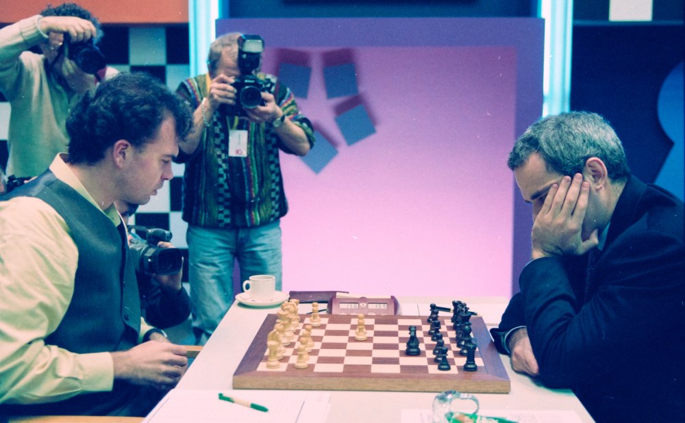 Kasparov was already prepared to resign and leave. He had his Rolex back on his hand, his chocolate was taken away from the board, his jacket was on. Basically he was saying - Come on, make this move and get it over with!