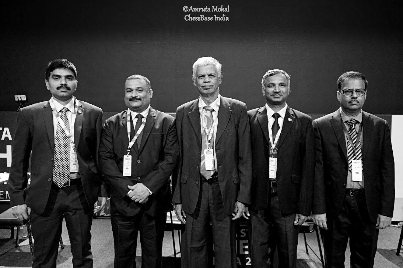 The role of the arbiters must never be underestimated, especially in blitz. (Left to right) Gopakumar Sudhakaran, Dharmendra Kumar, R. Anantharam (chief arbiter), Vasanth B.H and Mrinal Ghosh. They worked tremendously hard standing for hours, keeping an eye out for the smallest of mishaps taking place. The result was a flawless tournament without any appeals or issues.