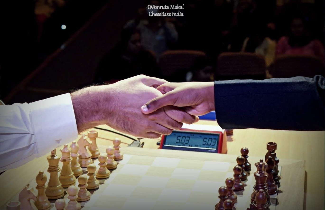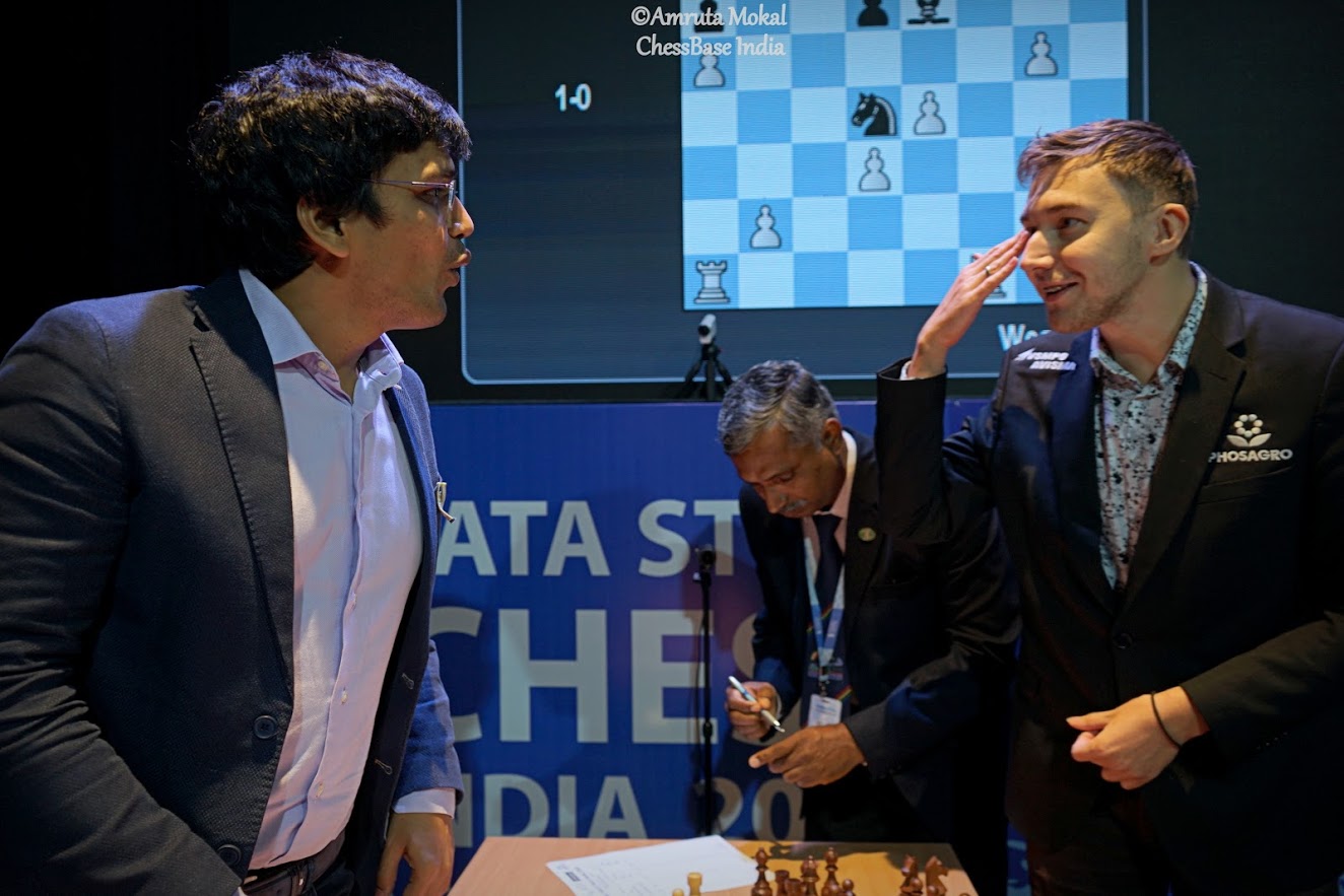The final moment of Nakamura resigning the game and Vishy led the mini-match 1-0 | Photo: Amruta Mokal