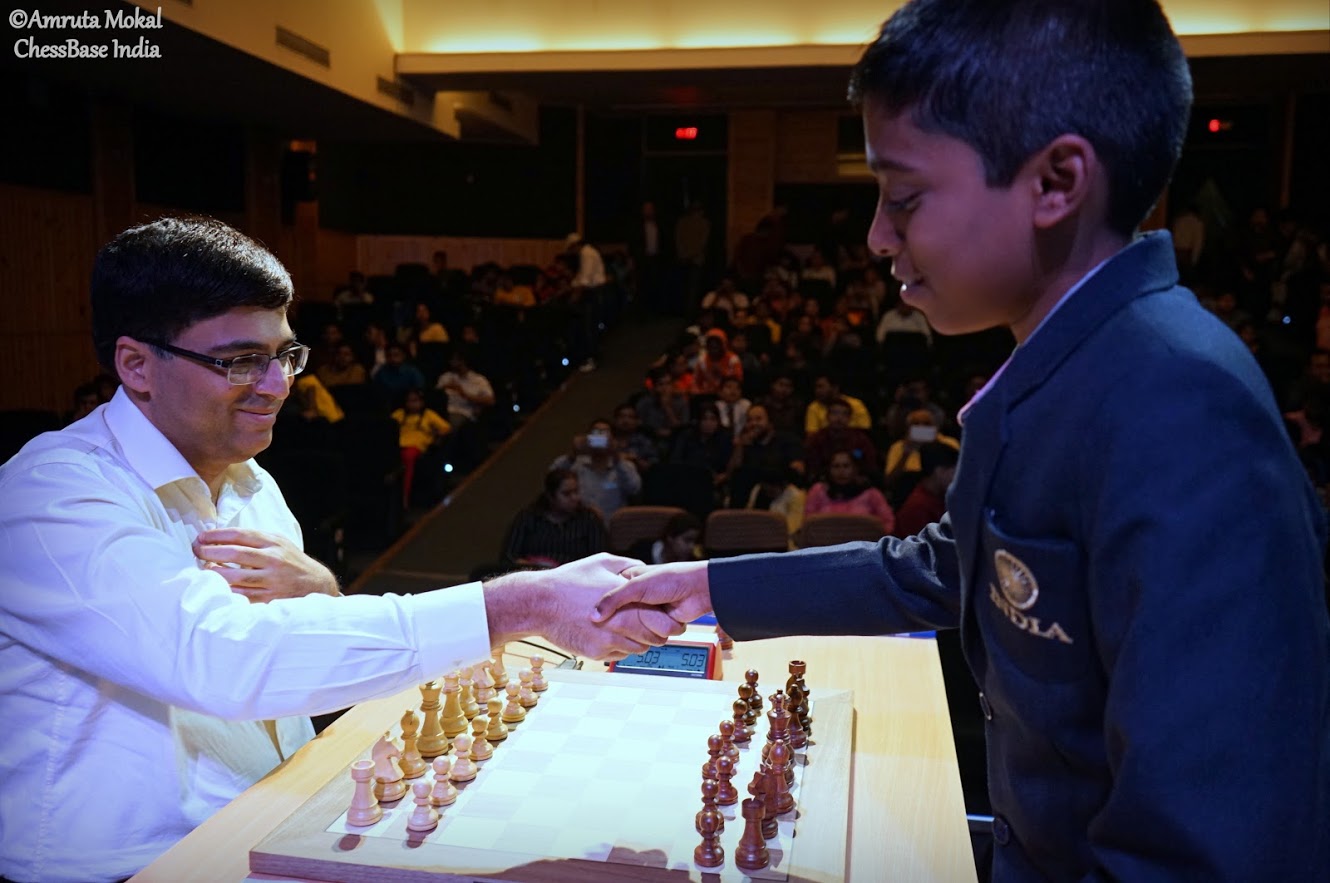 India's youngest GM Praggnanandhaa fought for the first time against India's first GM Vishy Anand | Photo: Amruta Mokal