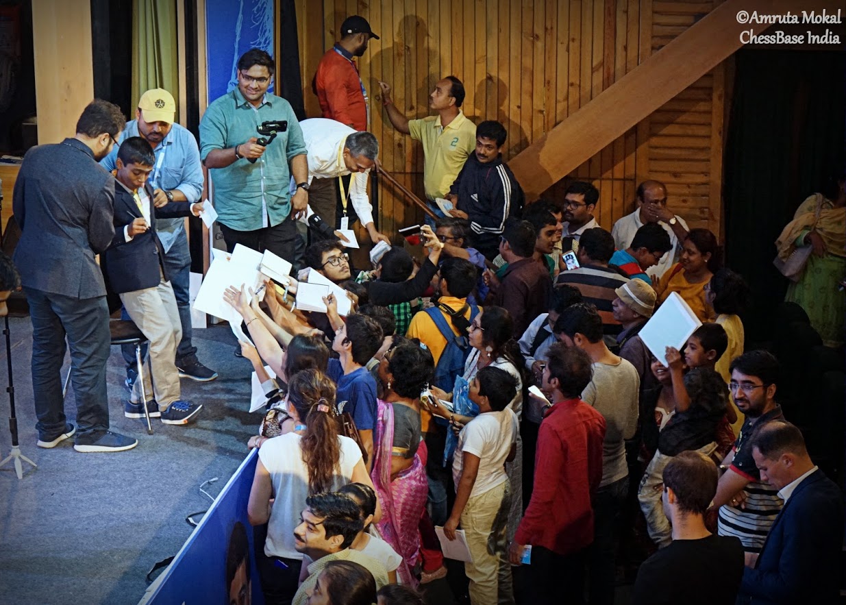The entire 200 capacity burst into applause after Vishy won the mini-match and the blitz title. The fans who were riveted to their seats during the blitz games heaved a sigh of relief. Anand who was playing a tournament in India after 26 years had won the title in front of his home audience. It meant a lot both to the spectators and also to Vishy himself.