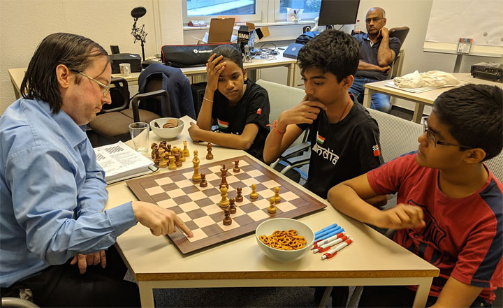 ... in April, Gukesh and other young talents (Savitha and Siddarth) got endgame training with Dr Karsten Mueller in the ChessBase office in Hamburg.