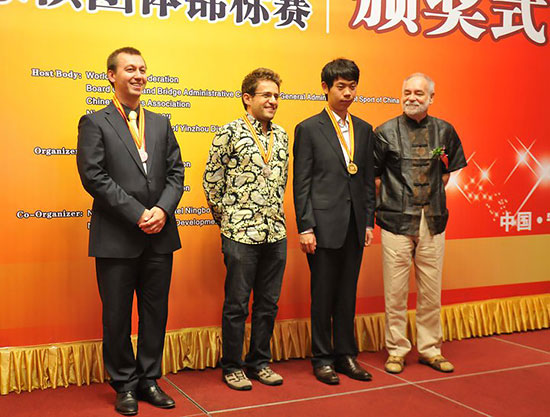 2011 World Chess Team Championship, first board best players (according to percent): Wang Hao, gold; Levon Aronian, silver; Gata Kamsky, bronze | Photo: sina.com.cn