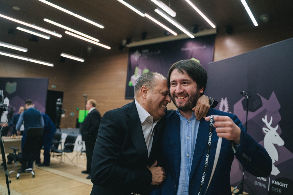 10/5/2019 – Azerbaijani Grandmaster Teimour Radjabov defeated rating favourite Ding Liren in tiebreaks at the final match of the FIDE World Cup in Khanty-Mansiysk. After draws in all four rapid games, Radjabov got victories in both blitz encounters to take home the title and USD 110,000. Maxime Vachier-Lagrave prevailed in the match for third place with a commanding 2:0 victory over Yu Yangyi. IM LAWRENCE TRENT sent a video recap of the play-offs. | Photo: FIDE