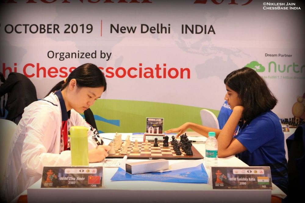 Zhu Jiner was held to a draw in round one by Tanishka Kotia of India | Photo: Niklesh Jain
