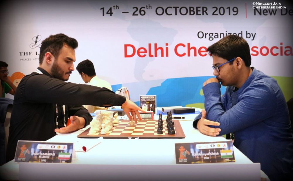 The biggest upset of the day in the open section was definitely Sankalp Gupta getting the better of Daniel Albornoz (2581) | Photo: Niklesh Jain