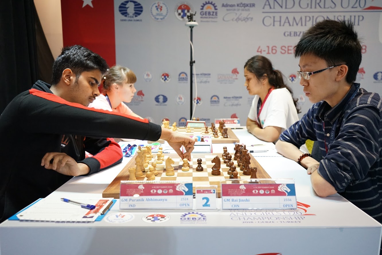 The game between Abhimanyu Puranik and Bai Jinshi ended in a draw in the Peroff. Both moved to 7½/10. | Photo: Amruta Mokal