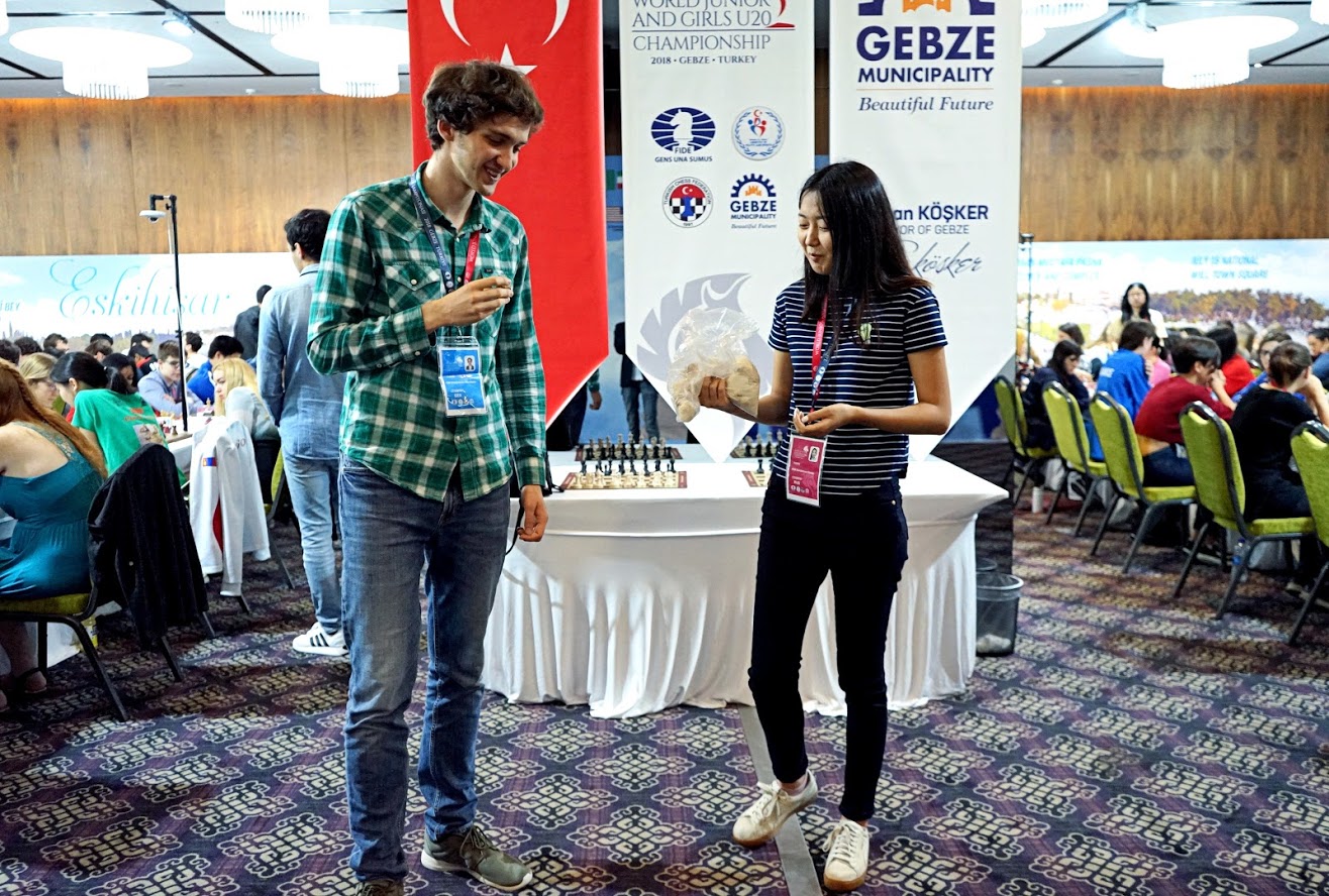 What's that you are eating?! Alexander Donchenko and Dinara Dordzhieva at the start of the round | Photo: Amruta Mokal