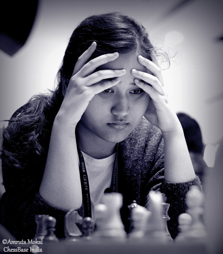 Dinara Dordzhieva (left) drew her game against Bibisara Assaubayeva on the top board | Photo: Amruta Mokal