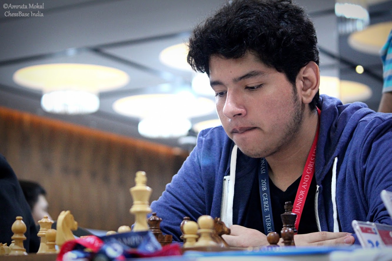 The strong Peruvian GM Jose Eduardo managed to beat the young Russian talent Murzin Volodar after a long struggle | Photo: Amruta Mokal